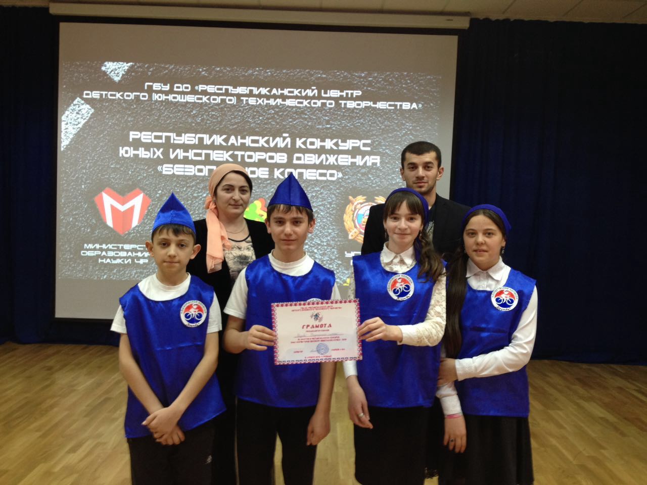 Команда МБОУ "СОШ с.п.Комарова" - победители муниципального этапа конкурса "Безопасное колесо-2016" на Республиканском этапе конкурса юных инспекторов движения.