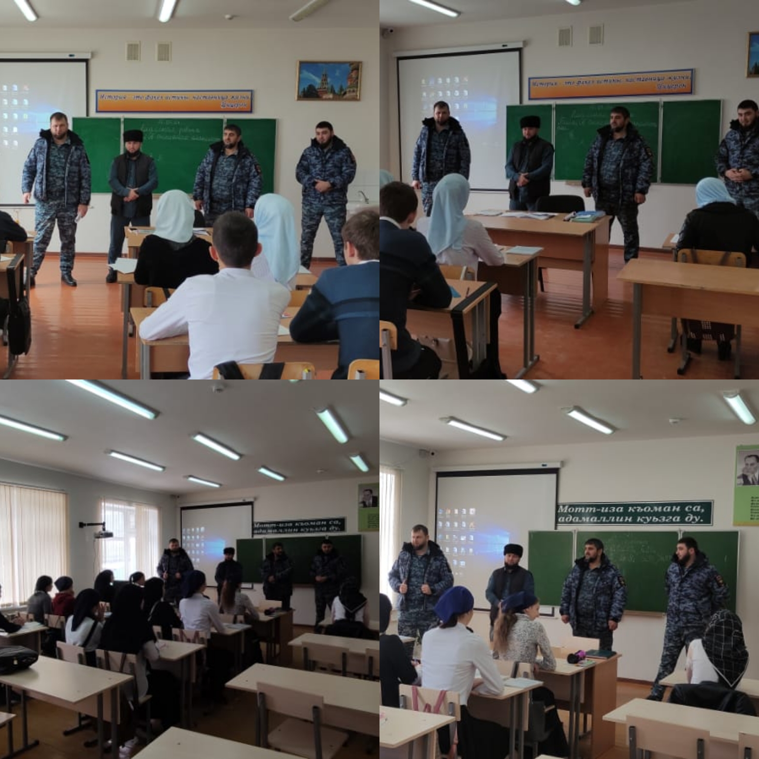 Беседу с обучающимися провели инспектор по ПДН Магомадов Муса, участковый Талхадов Сулиман, имам села Абдулаев Хамзат, на тему: Запрет на ношение телефонов на территории образовательного учреждения.