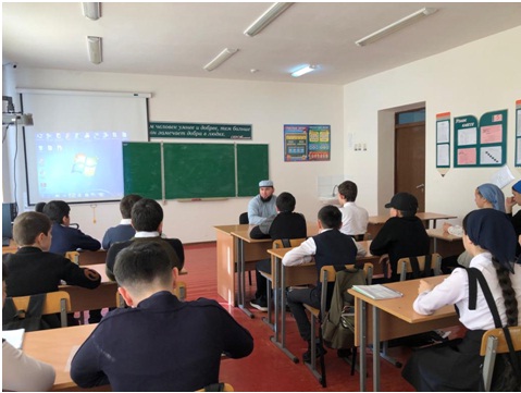 5 сентября на встречу с обучающимися был приглашен имам села Комарова Абдулаев Хамзат Хусейнович, бывший выпускник нашей школы. Хамзат окончил школу в 2007 году и поступил в медресе «Нур» в селе Знаменское.