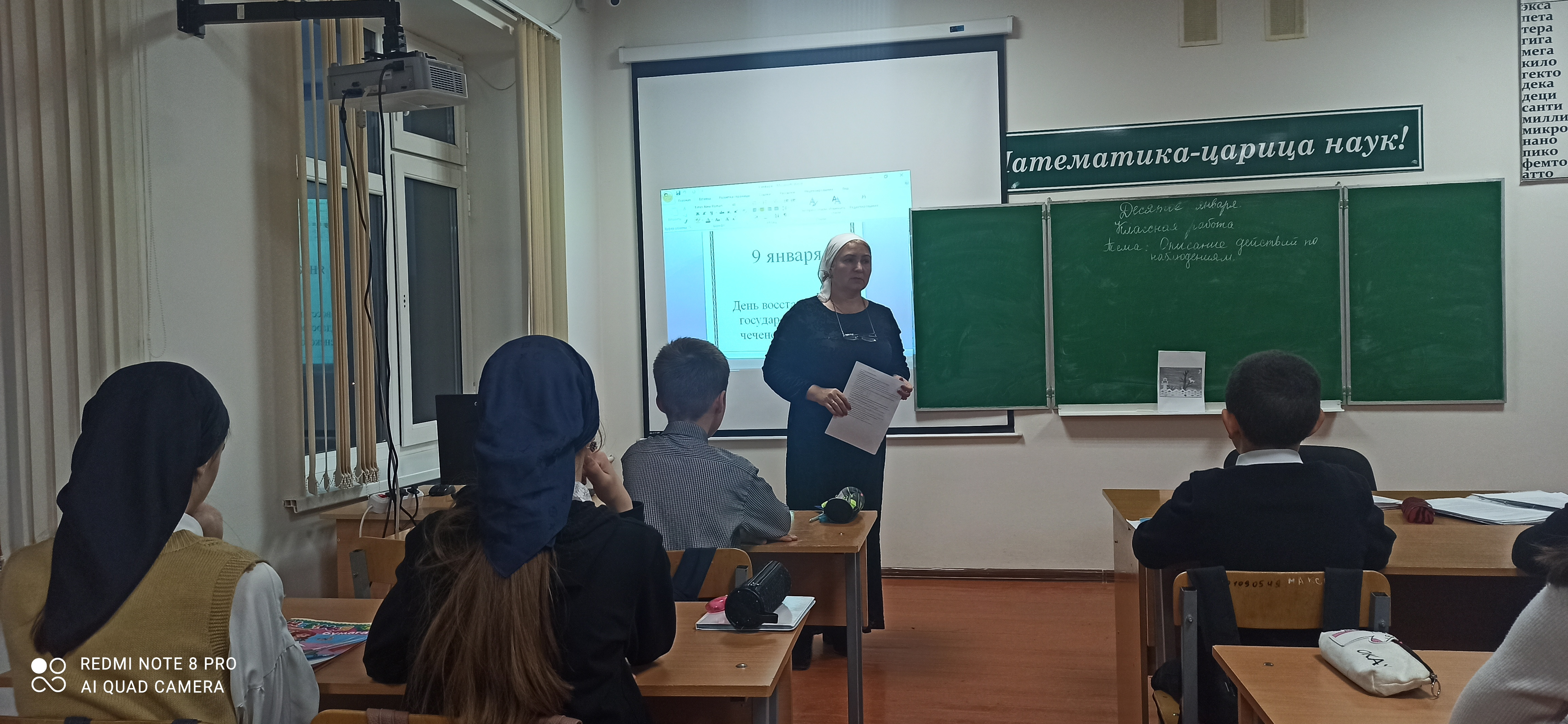 9.01 Классные руководители и учителя истории провели мероприятия в 8-9 классах ко "Дню восстановления государственности Чеченского народа".