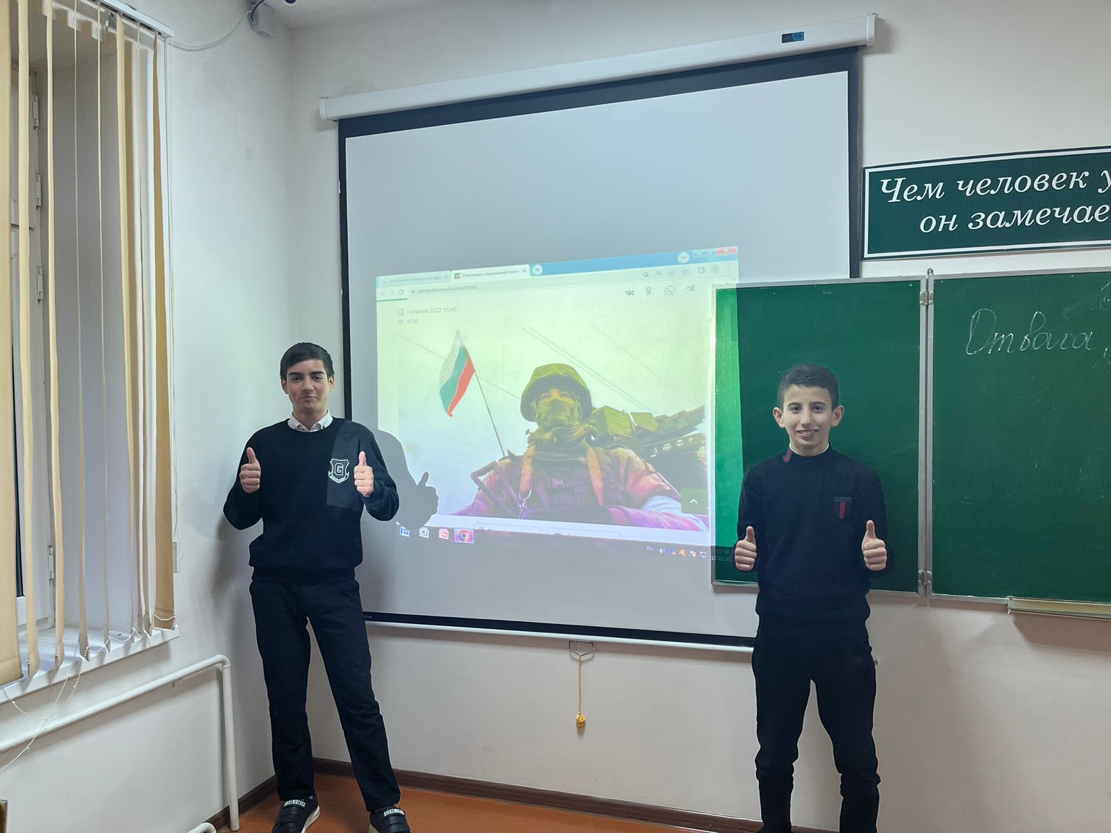 20.02.2023Классный руководитель Цуцаева Лалита Бислановна провела классный час в 8а классе на тему: "Героизм, мужество и отвага", посвященный участникам специальной военной операции, проявившим отвагу, мужество и героизм.