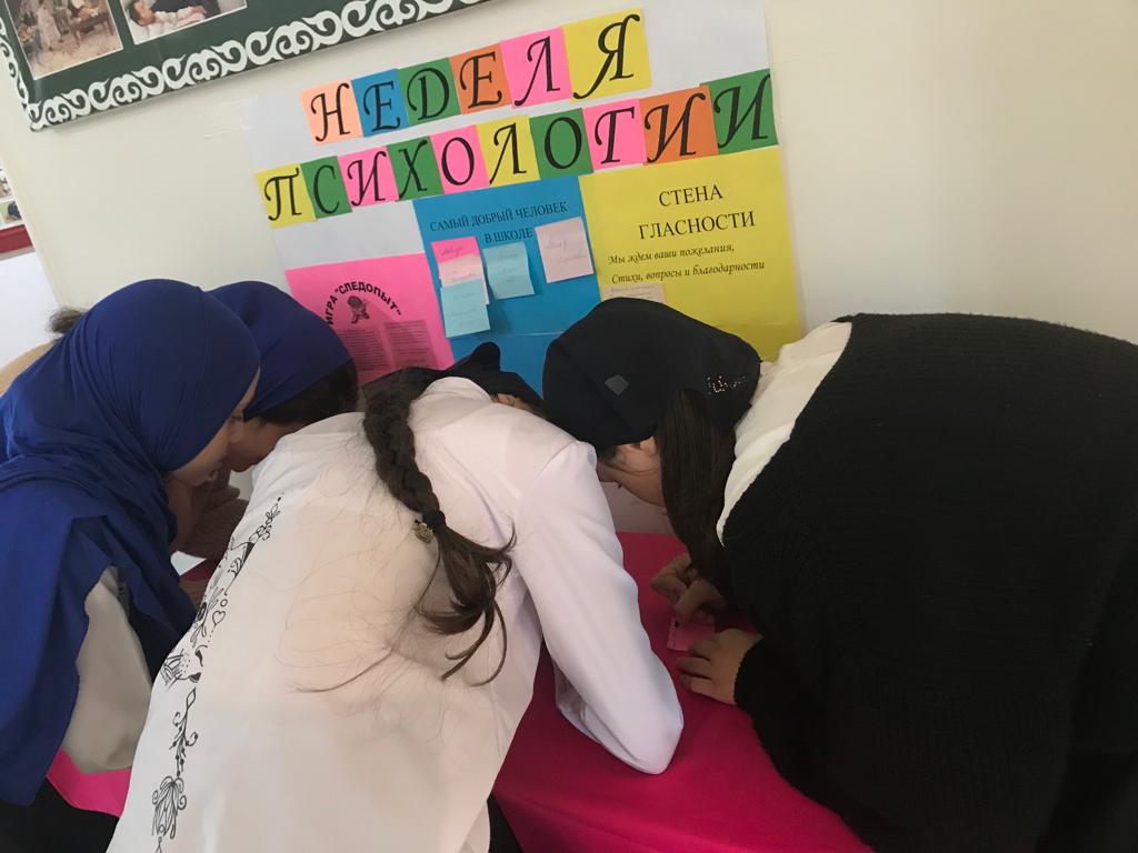 Ученикам было интересно участвовать в акциях проводимых нашим психологом Багаевой Ф.А. и наблюдать за тем, как проходит неделя которая была насыщена проводимыми разными акциями и мероприятиями.