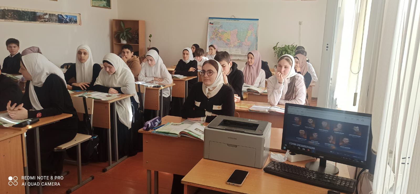 В ходе беседы классный руководитель Арснукаева Эльза Руслановна отметила, что Россия всегда славилась своими героями, которые, не задумываясь, вставали на защиту своей Родины и ее интересов.