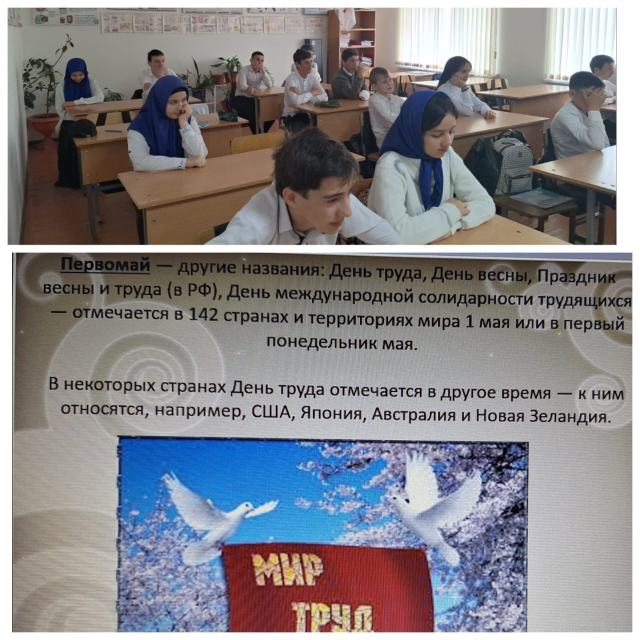 23 апреля с обучающимися 7 класса проведён классный час на тему "История возникновения Праздника Первомай!"