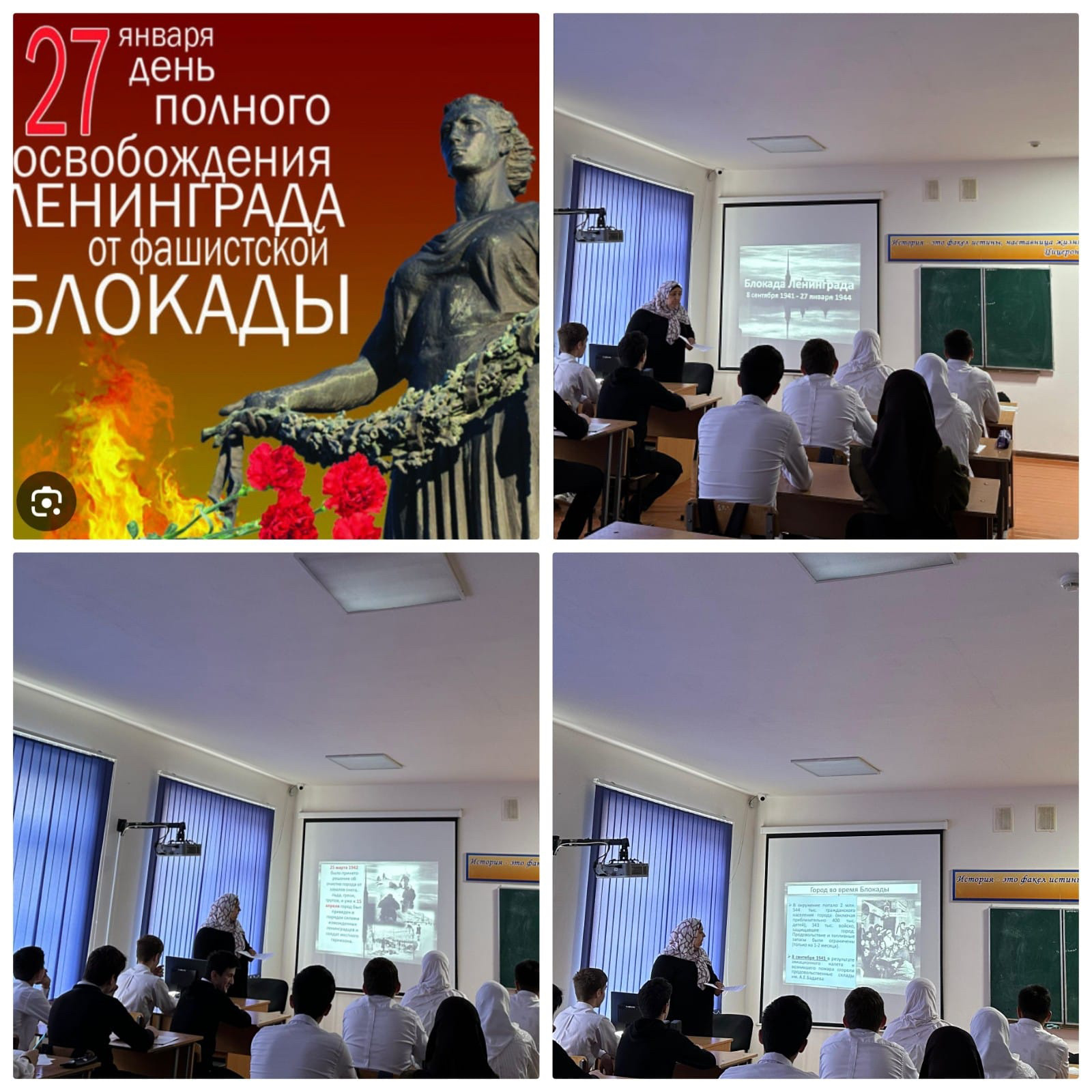 27 января учитель истории Арснукаева Э.Р. провела уроки истории, приуроченные Дню снятия блокады Ленинграда.