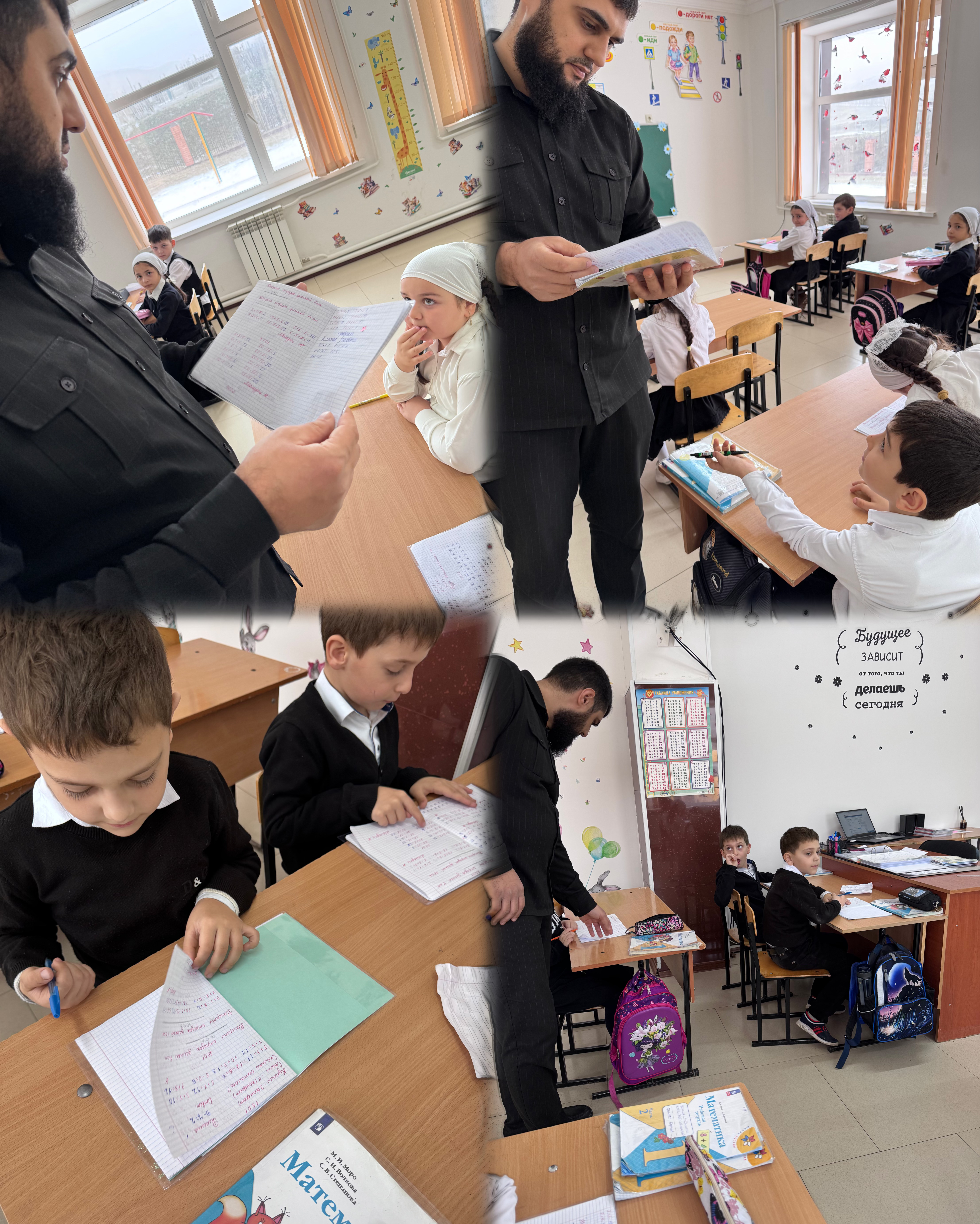 Директор школы МБОУ «СОШ с.п. Комарова» посетил 1-е классы с проверкой готовности к урокам.