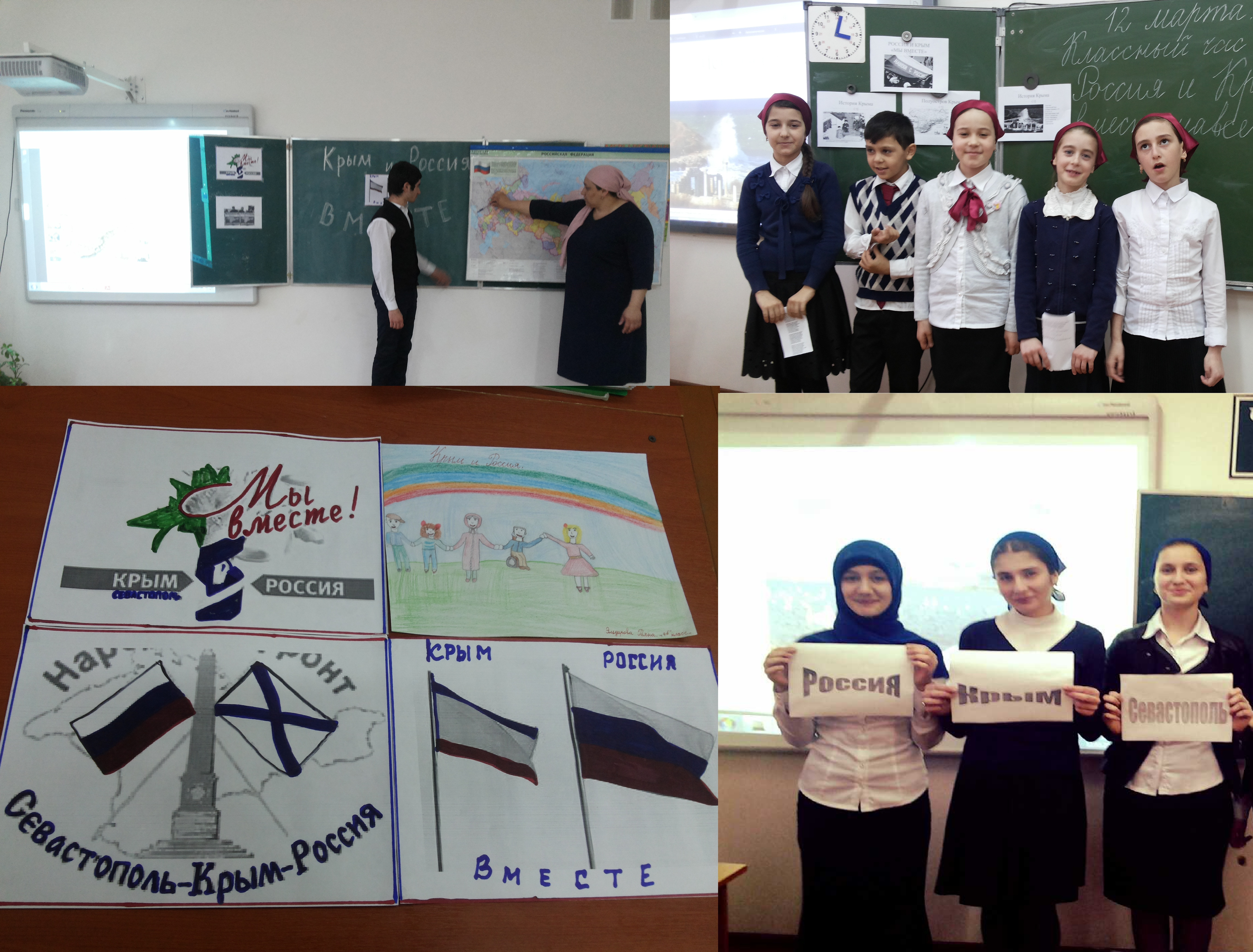 С 1.03. по 12.03.2015г. в МБОУ «СОШ с.п.Комарова» прошли мероприятия под девизом «Россия и Крым – вместе», посвященные вступлению Крыма в состав России. Согласно плану во всех классах прошли классные часы, беседы, конкурсы рисунков.Классные часы посвящены темам: «Россия и Крым – мы вместе», «Россия и Крым – всегда вместе», «Возвращение домой», «Мы вместе-воссоединение России и Крыма». В 7, 8, 10 классах были показаны слайды, проведены диспуты. Цель этих мероприятий: информирование обучающихся об историческом факте - воссоединение Крыма с Россией, его значениие для судьбы страны.Обучающиеся познакомились с историей, географическим расположением, достопримечательностями Крымского полуострова, узнали о этническом составе населения (преобладают русские – 59%, украинцы -24%). Были просмотрены презентации, посвященные истории Крыма с древних времен до наших дней; обучающиеся ознакомлены с символикой Крыма.Также на классных часах рассмотрены вопросы: Крещение Владимира в Херсонесе; Завоевание Крыма Екатериной II; Крымская война 1853 – 1856 гг.; Оборона Севастополя 1941 – 1942 гг.; Развал Советского Союза. Крым уходит из России вместе с Украиной; Воссоединение Крыма с Россией. Современная политическая часть. Обучающиеся, которые отдыхали в Крыму, рассказывали о тех достопримечательностях, где они побывали, показывали фото.